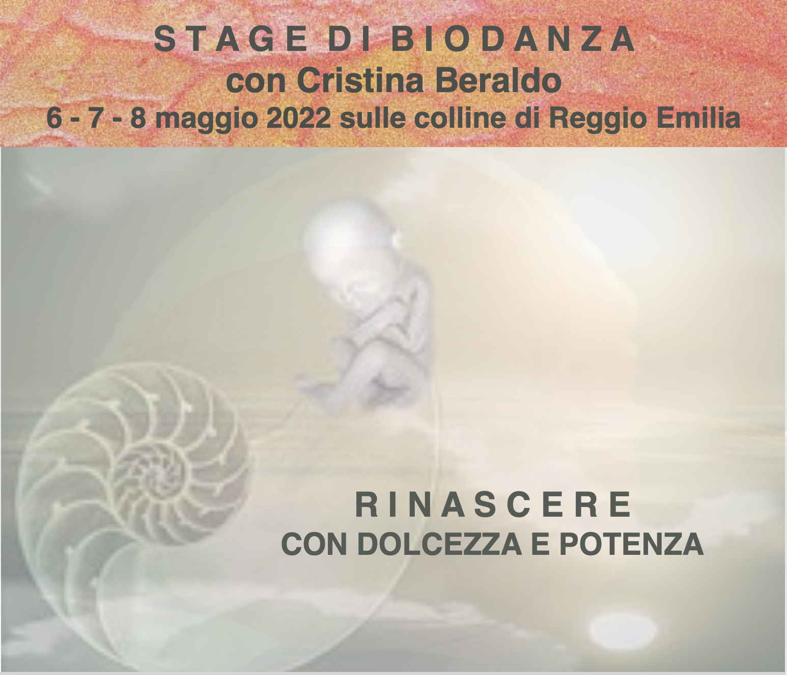 In questo stage saremo invitati a vivere vari momenti di rinascita sostenuti da una qualità affettiva condivisa e permettendoci di esplorare nuove dimensioni del nostro essere.